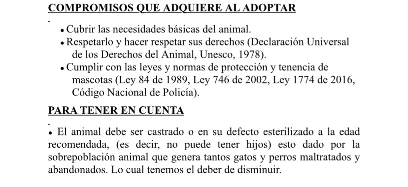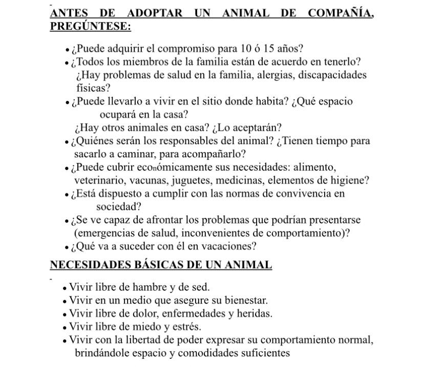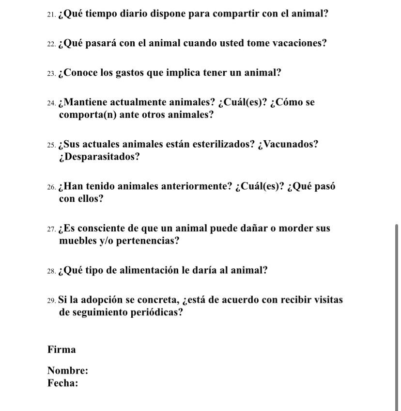 1. Llenar el formulario de adopción en su totalidad, con respuestas amplias y sinceras.
